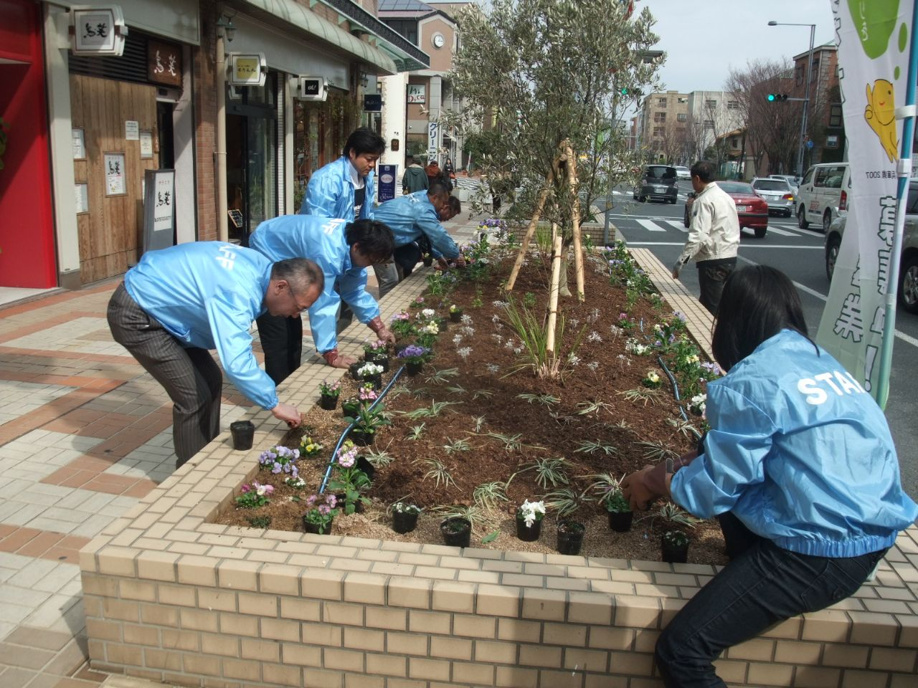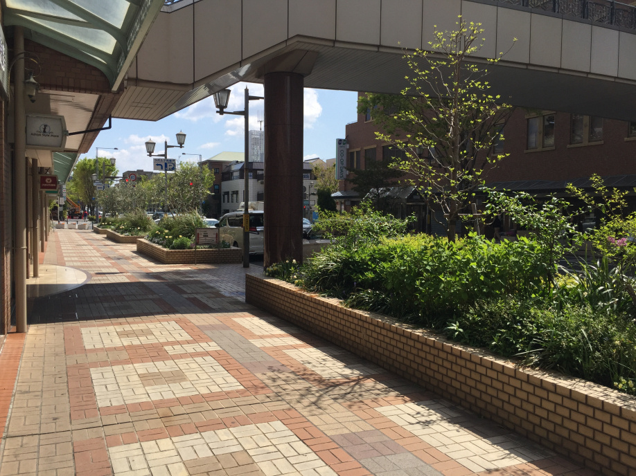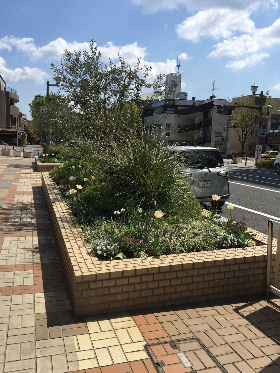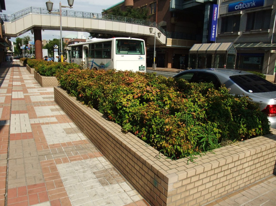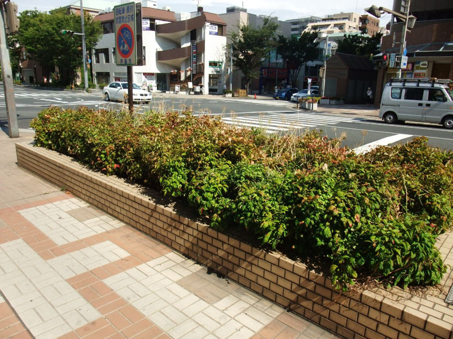 オタフクナンテンが植えてある市の花壇を芦屋らしいもっと歩きたくなるような花壇に変えようとラポルテ北館店舗の会費と県の緑化事業の助成金を使って4年前に変えた花壇。以前はこんな感じでした