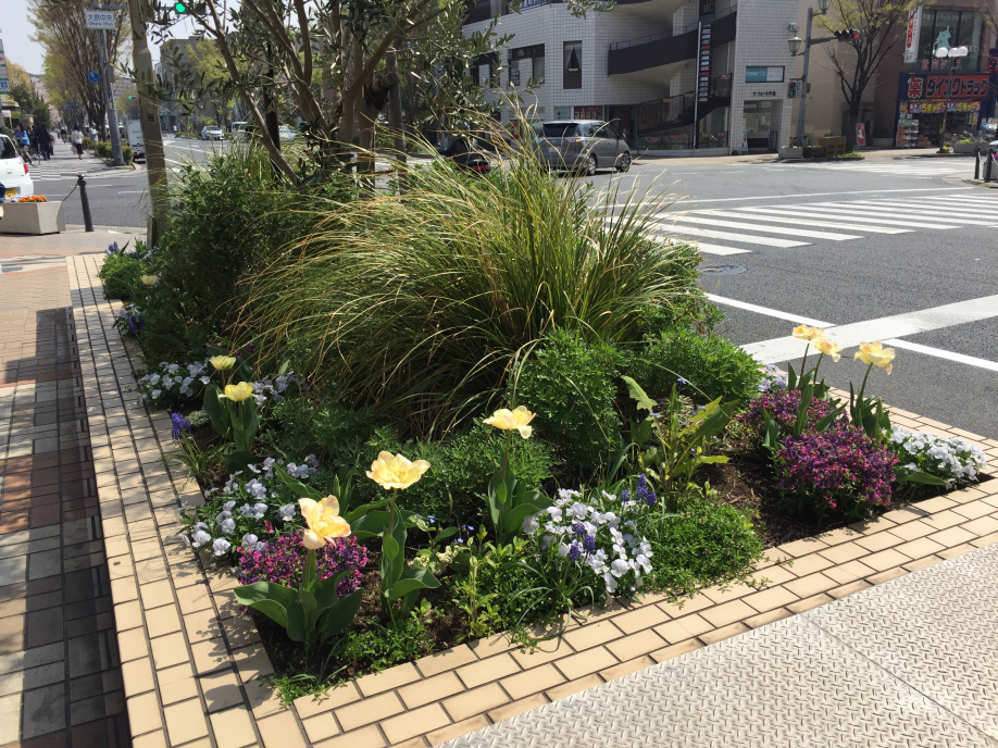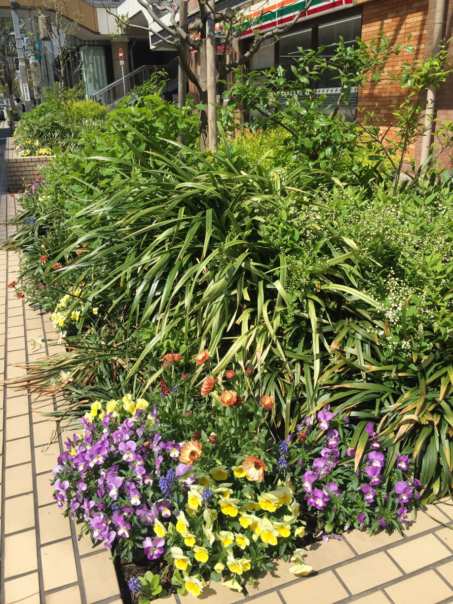 春爛漫。お店の前の花壇が一年で一番華やかな季節になりました。