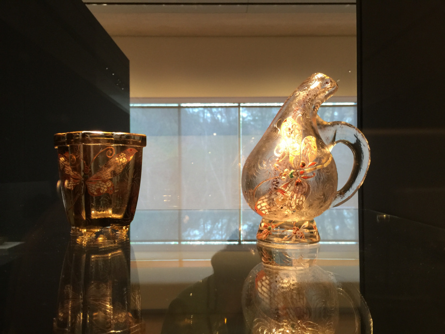 今回目が釘づけになり、作品をぐるぐる何度も回ってみつめていたのがこちらの作品です。光を受けたガラスは複雑な色合いを出して、どうしてこんな色の層が作りだせるんだろうから昆虫の精密な表現から、その色の美しさにため息ばかりでます。帰りたくなーいといつも思います。