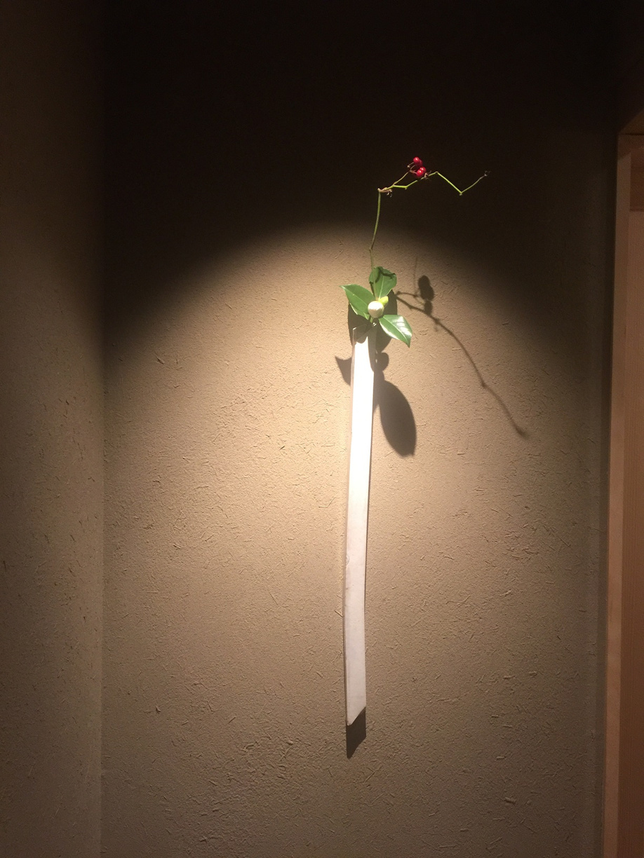 お食事のお部屋コーナーに飾られた花器 美しいラインです