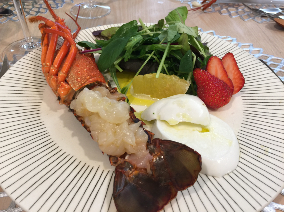 伊勢エビ カプレーゼ シャンパンに合う前菜です