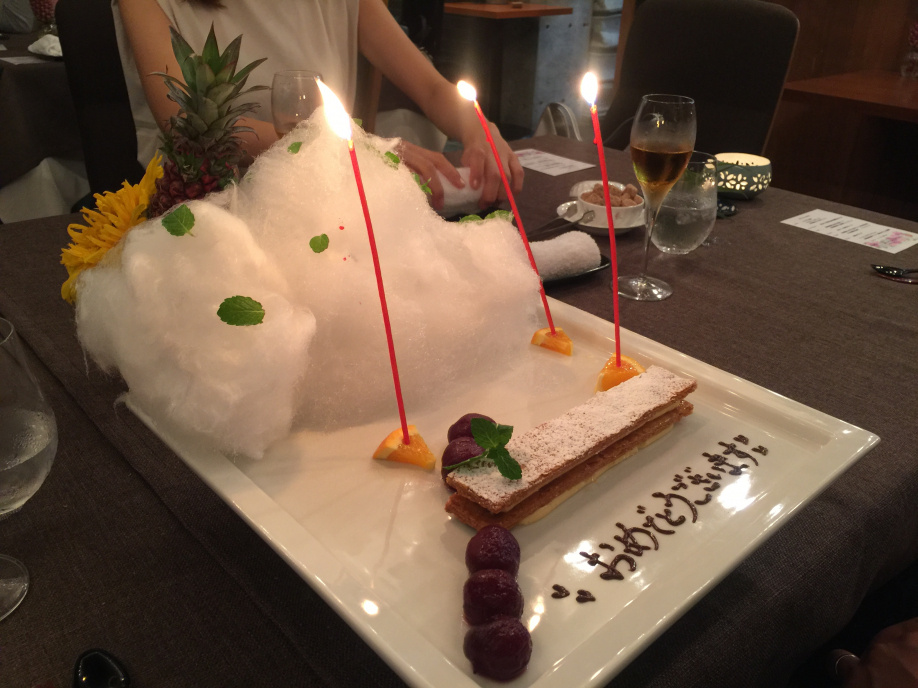シェフからのプレゼントです。ミルフィーユを作ってくださいました。