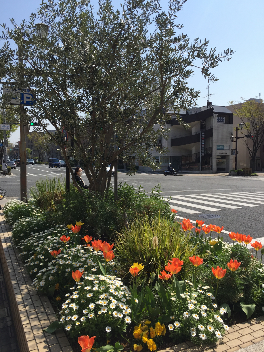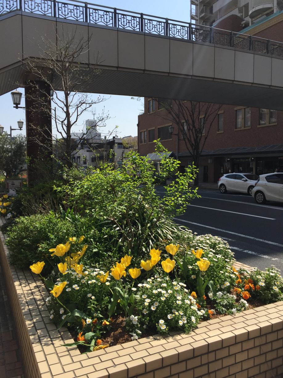 西側の花壇は白いチューリップ。これからハナミズキも咲いてきます。