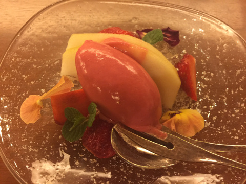 苺のシャーベットと洋梨