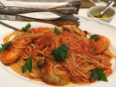 牡蠣と天使の海老のアラビアータ(好みで作ってくださいました)