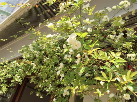 お店のもっこうバラがだいぶ咲いてきました。