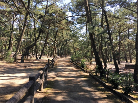 本当はバラをみたかったけどあまりに暑いので、慶野松原の松林でお散歩に変更です。