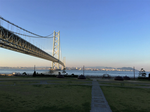 夕方に明石大橋の近くに。神戸方面の景色も綺麗でした。