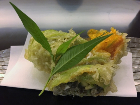 ズッキーニの花の中には鮎