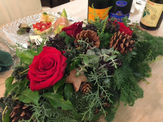 アレンジメントはFlowershopみかささんでお願いし、バラの花を挿しました。お正月は、水引に変えてみます。生なのでとってもいい香り^^