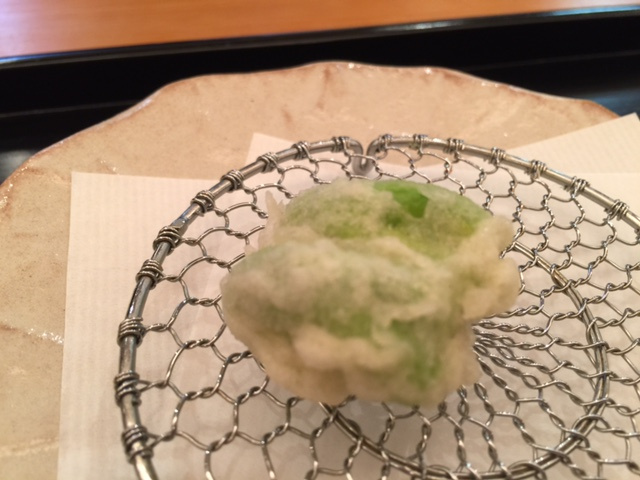 空豆の天ぷら(今が出始めだそう!甘味がぎゅっと濃くて)