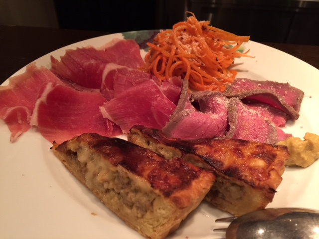 盛り合わせ(生ハム・人参のサラダ・ローストビーフ・キッシュ)