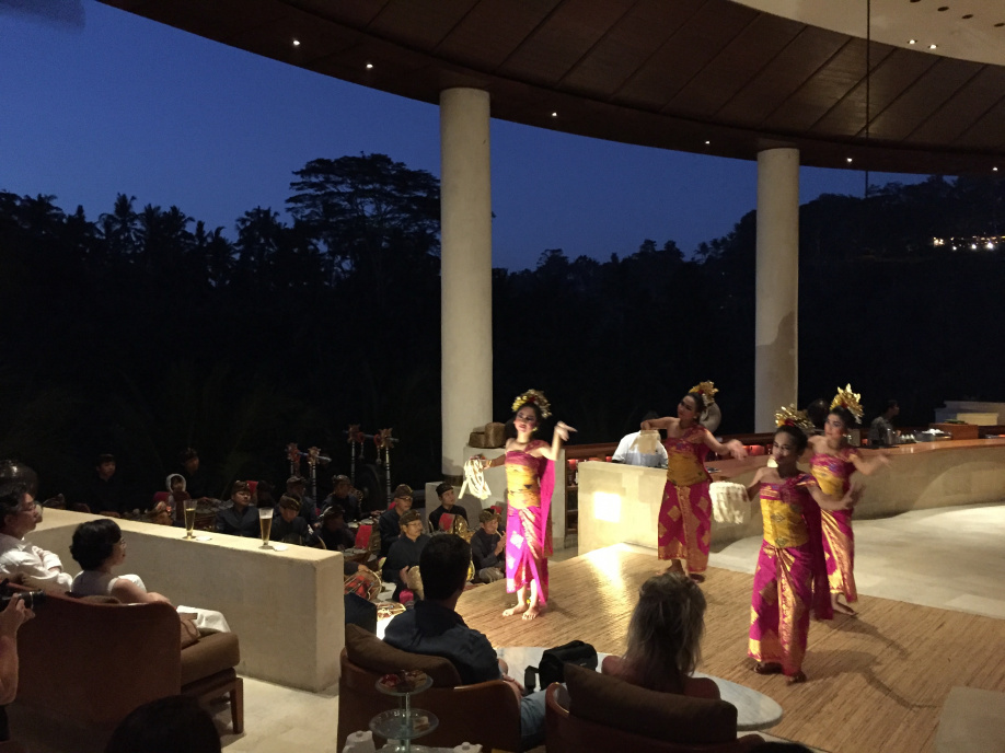 夕方からは、ウブドナイトがあり伝統的なバリの舞踏を観て、バリ島の料理をいただきます。全部ホテル内のイベントでずっとホテルにいても充分楽しめます。