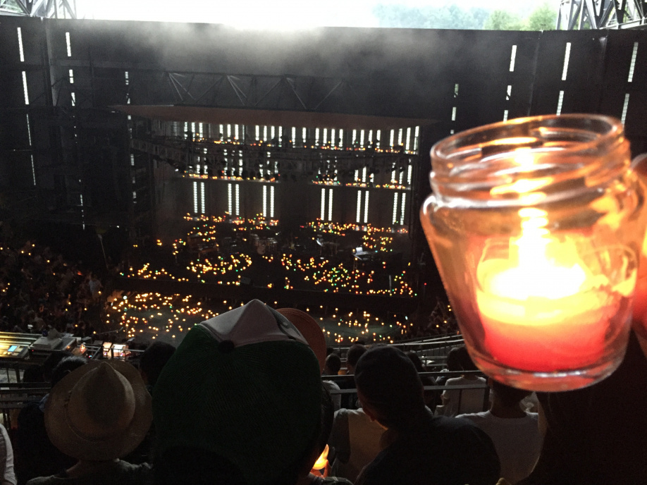 キャンドルの灯りと席から見える幻想的な富士山、爽やかな風の中で聴くMISIAの歌声は感動的で、涙が出てきてきました。