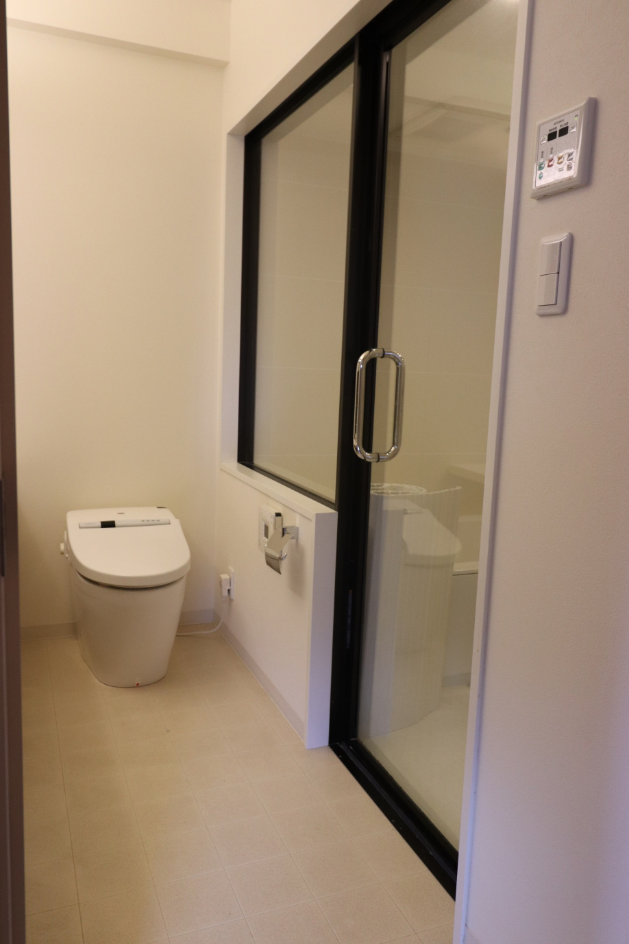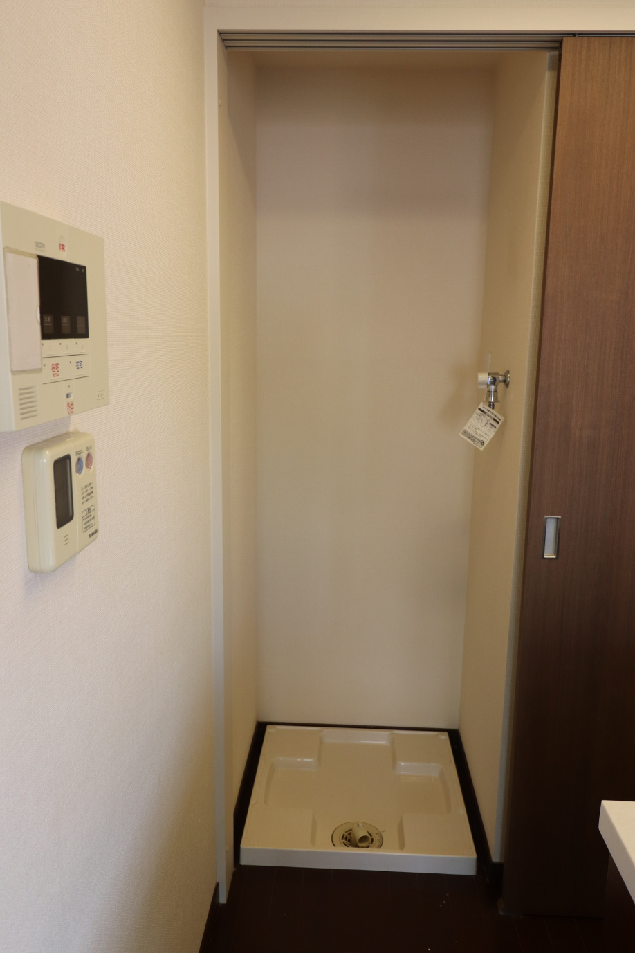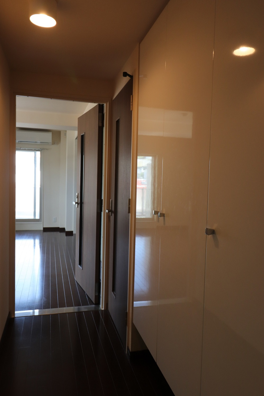 後ろには洗濯機置場・冷蔵庫置場が扉のむこうにあります