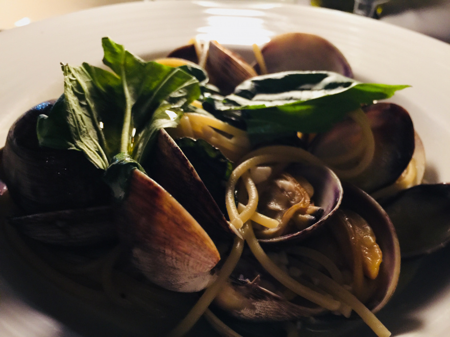 あさりのスパゲッティ 24ドル(あさりの粒がとっても大きかった)